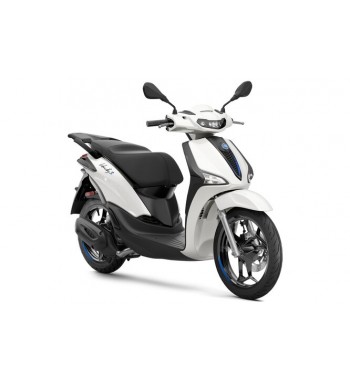 La personnalité audacieuse du Piaggio Liberty S se reflète dans ses couleurs vives, mais ce sont ces détails qui font la différence. Les finitions en noir brillant enveloppent chaque détail, le bloc optique arrière, le contour des clignotants et le logo, tandis que des touches de couleur bleue mettent en valeur le profil de la « cravate » sur le bouclier et les jantes foncées à trois doubles branches. Le phare horizontal moderne à LED et la calandre en nid d'abeille de la cravate centrale confèrent un look affirmé à l'avant, bien que fidèle au style harmonieux du Piaggio Liberty.